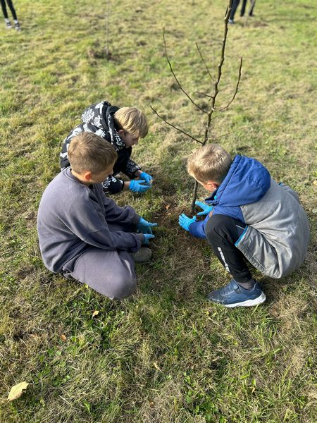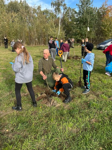 Owocowy sad społeczny, dzięki pozyskanemu funduszowi, posadziliśmy 120 drzewek owocowych i zakupiliśmy paliki do nich. Członkowie stowarzyszenia przygotowali teren i wykonali niezbędne otwory w ziemi do posadzenia drzewek, a same drzewka sadzili uczniowie klas 2 i 3 Publicznej Szkoły Podstawowej w Dąbrowie. Wysiłek dzieci został wynagrodzony tradycyjną kiełbaską z ogniska, która przyprawiona odrobiną pracy na świeżym powietrzu smakowała wybornie. W priorytetowych planach na obecny rok mamy jeszcze wykonanie ogrodzenia zabezpieczającego sad przed dziką zwierzyną.